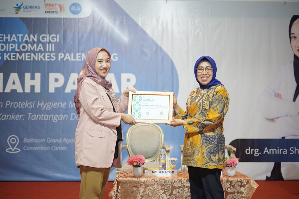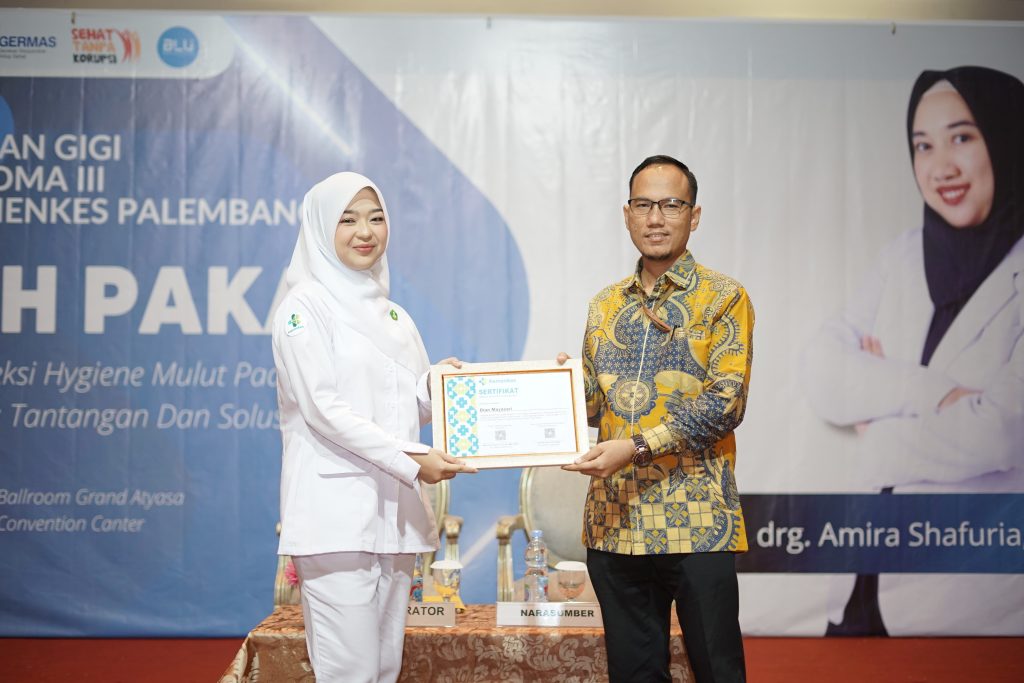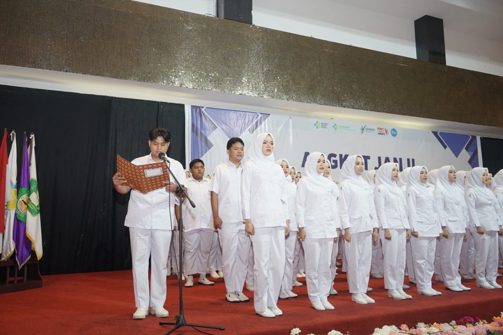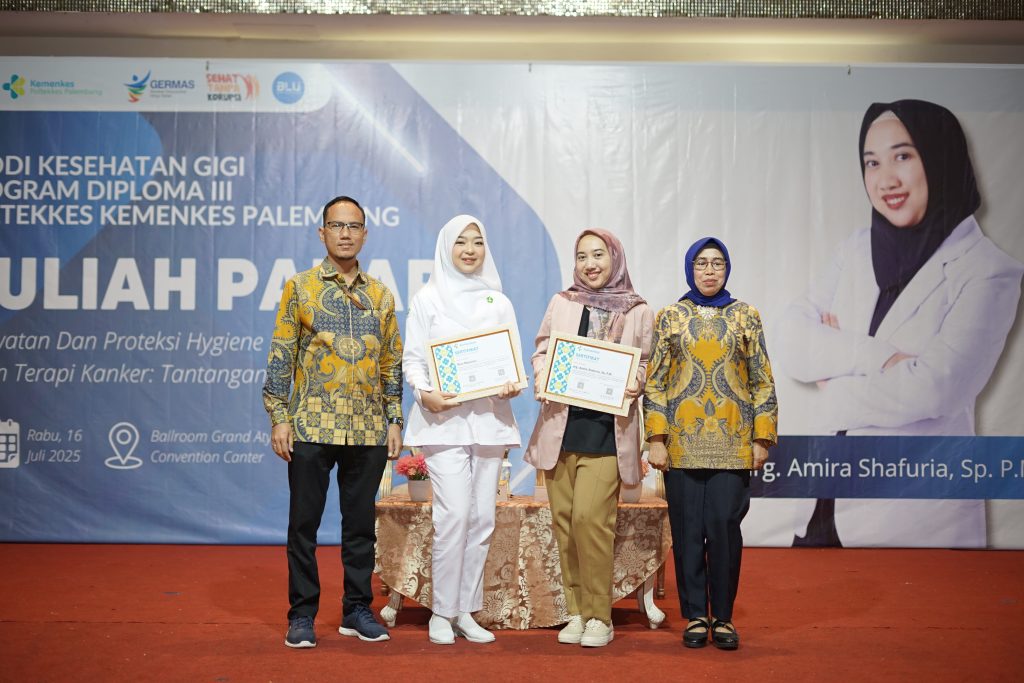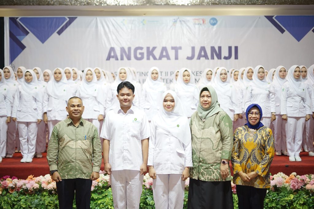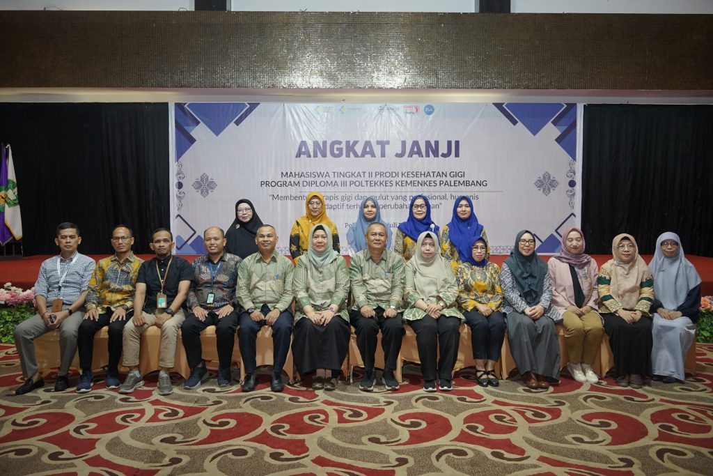 Palembang, 16 Juli 2025 – Angkat Janji Mahasiswa Semester V Jurusan Kesehatan Gigi Poltekkes Palembang mengusung tema Membentuk Terapis Gigi dan Mulut yang Profesional, Humanis dan Adaptif terhadap Perubahan Zaman yang dilaksanakan dalam rangka menyambut kegiatan Perkuliahan Praktek Klinik yang akan segera dimulai. Angkat Janji ini dengan penuh khidmat diikuti oleh 116 mahasiswa. Ketua Pelaksana Kegiatan ini yaitu Mujiyati, SE, M. Si dan hadir juga Ketua Jurusan Kesehatan Gigi drg. Sri Wahyuni, M. Kes didampingi Sekjur Kesehatan Gigi beserta seluruh Civitas Akademika Jurusan Kesehatan Gigi Poltekkes Palembang.