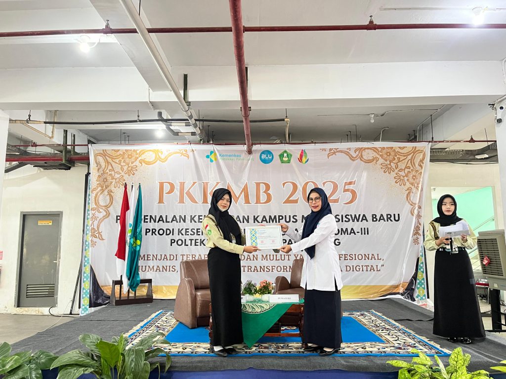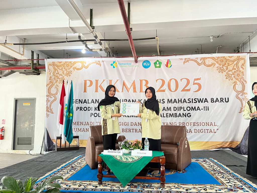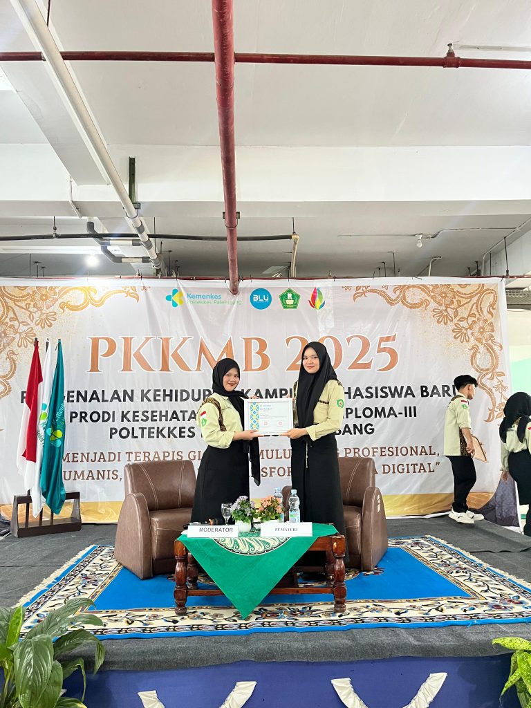 30 Juli 2025, Palembang, Telah diadakan Masa Pengenalan Kehidupan Kampus Bagi Mahasiswa Baru Jurusan di Gedung Jurusan Kesehatan Gigi. Rangkaian kegiatan dimulai dengan presensi kehadiran peserta pada pukul 06:00. Acara lalu dibuka oleh Master of Ceremony tepat pada pukul 08:00 WIB. Tak lupa juga, acara diawali dengan menyanyikan lagu Indonesia Raya dan Mars Poltekkes bersama-sama. Mengangkat tema “Menjadi Terapis Gigi dan Mulut yang Professional, Humanis, dan Siap Bertransformasi di Era Digital”, acar dibuka oleh Ketua Jurusan Kesehatan Gigi, drg. Sri Wahyuni, M.Kes. Dan disambut meriah oleh seluruh Mahasiswa Baru.