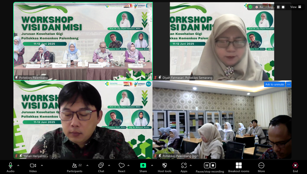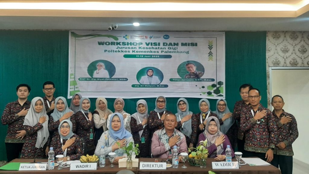 Palembang, 11 Juni 2025 — Workshop Visi Misi Jurusan Kesehatan Gigi Poltekkes Palembang dihadiri peserta secara Luring dan Daring yaitu diantaranya seluruh Civitas Aklademika Jurusan Kesehatan Gigi, mahasiswa dan stakeholder yang diadakan oleh Jurusan Kesehatan Gigi Poltekkes Palembang bertempat di Ruang Rapat Jurusan Kesehatan Gigi Poltekkes Palembang, workshop ini diadakan selama 2 hari dimulai 11 s.d 12 Juni 2025.